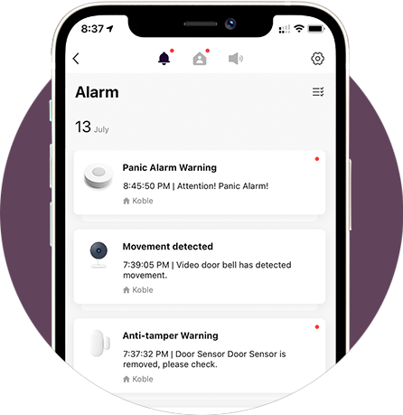 Our smart security system from our detection sensors to our smart digital door lock saves historical records to allow you to keep track of what happens at home. Simply open up your Koble app to find out what happened on a particular day, for better clarity and peace of mind.